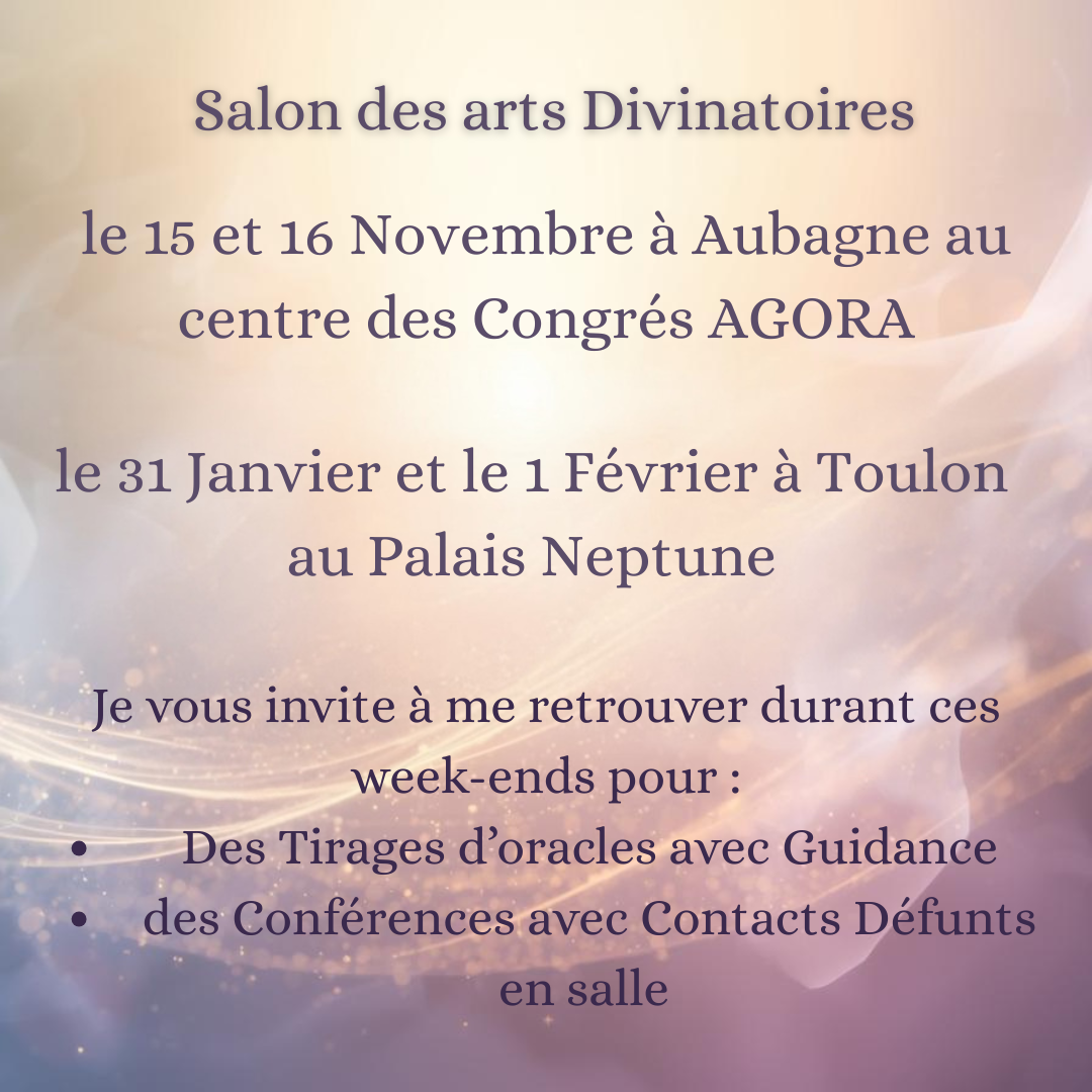 j’aurai le plaisir de vous accueillir pour réaliser des Tirages d’Oracles avec Guidance afin de répondre à vos questions d’ordre sentimental, professionnel ou autre.